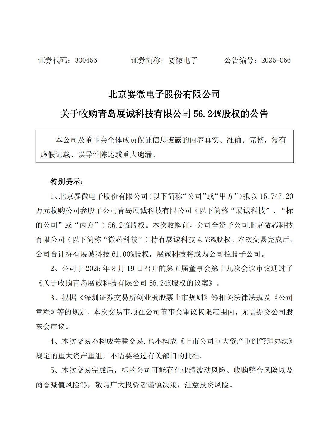 近期,赛微电子宣布以1.57亿元收购青岛展诚科技有限公司(以下简称“展诚科技”)56.24%股权,本次交易完成后,赛微电子合计持有展诚科技61.00%股权,对展诚科技实现控股,新增芯片设计服务及EDA软件开发业务。